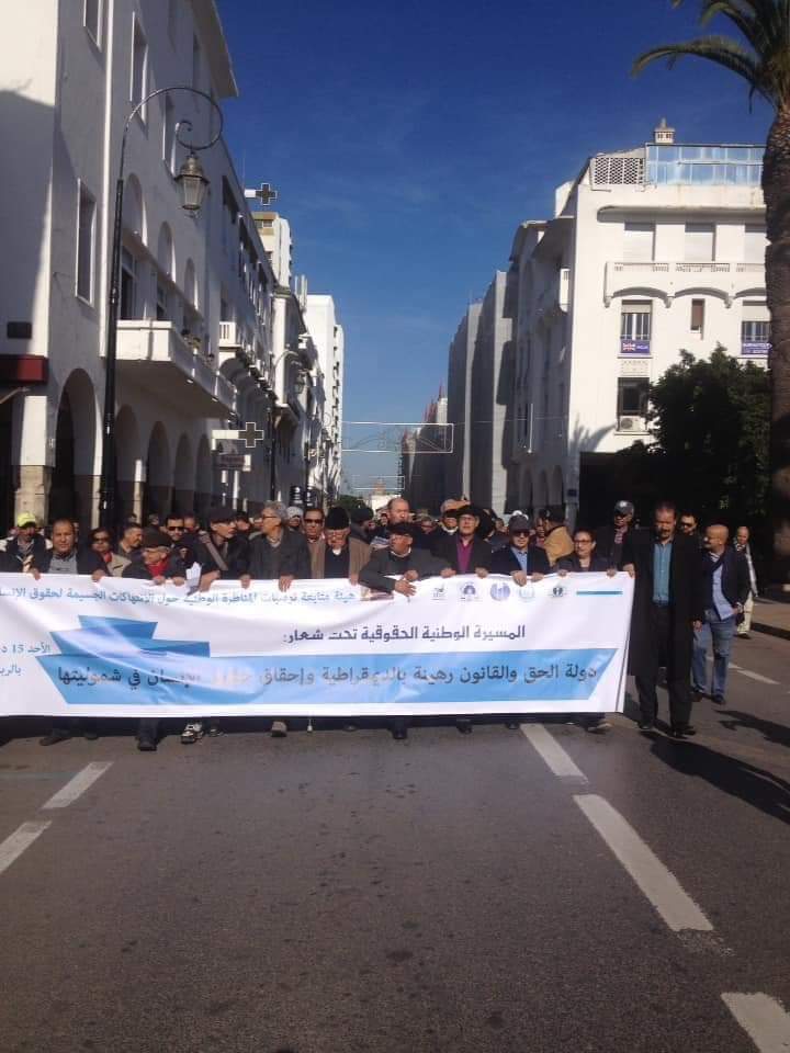 وقد شارك في هذا الموعد السنوي، المنظم بمناسبة اليوم العالمي لحقوق الإنسان، عشرات الناشطين الحقوقيين والمدافعين عن “حقوق الإنسان ” من الجمعية المغربية لحقوق الإنسان، والمنتدى المغربي للحقيقة والإنصاف والجمعية المغربية لحقوق الإنسان وجمعية عدالة والهيئة المغربية لحقوق الإنسان والعصبة المغربية للدفاع عن حقوق الإنسان ومنتدى بدائل المغرب مؤكدين أن هذه المسيرة السنوية فرصة لتذكير السلطة المغربية والحقوقيين بمطالب الحركة الحقوقية والتزاماتهم، سواء الدولية منها المتضمنة في اتفاقيات صادقت عليها الدولة ، أو التزاماتها الوطنية التي تتمثل أساسا في توصيات هيئة الإنصاف والمصالحة، التي تطالب الحركة الحقوقية بتنفيذها لأن أغلبها وأهمها لم ينفذ .