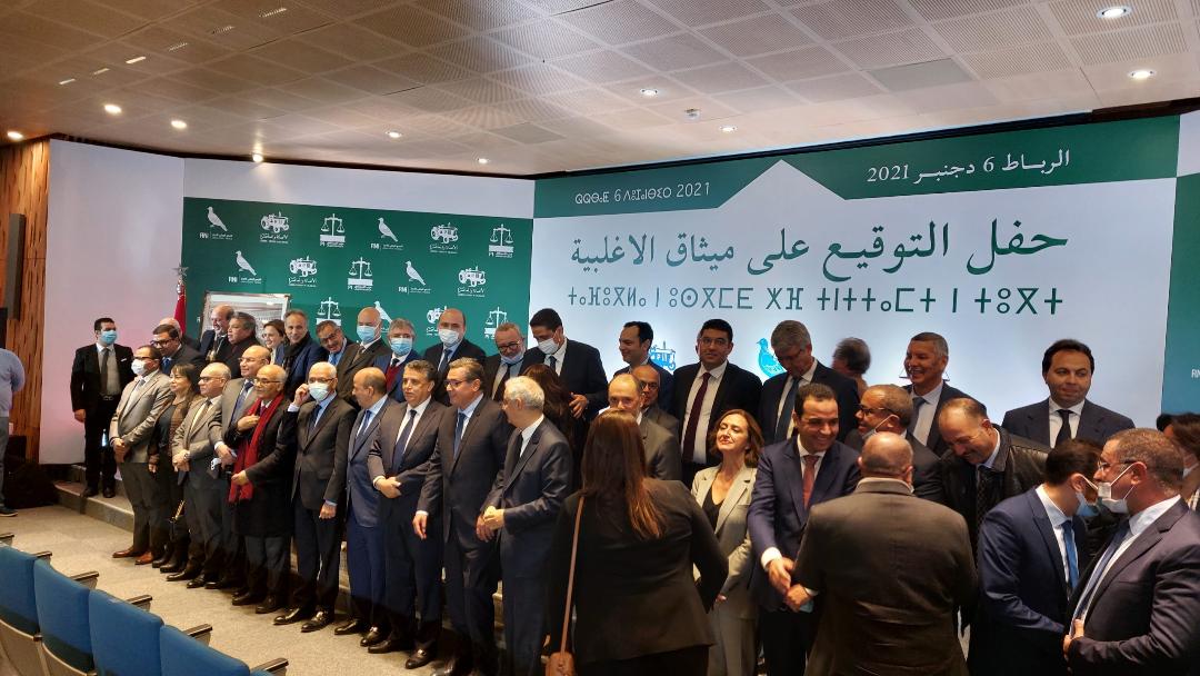 وقع أمناء أحزاب الأغلبية الحكومية يوم الاثنين بالرباط على ميثاق الأغلبية بعد مرور شهرين على تشكيل الحكومة في 7أكتوبر.