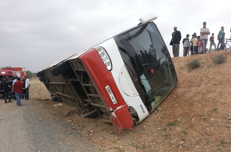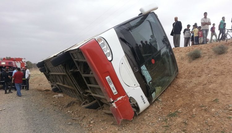 انقلبت حافلة لنقل المسافرين بإقليم سطات.أسفرت عن إصابة 35 شخصا بجروح، اثنان منهم إصابتهما خطيرة، اليوم الأحد، في حادث وقع قرابة الساعة الثانية والربع بعد الزوال، حسب إفادة القيادة الإقليمية للوقاية المدنية بالدار البيضاء – سطات مسجلا أن حافلة نقل المسافرين كانت متجهة نحو الجديدة عن طريق سطات