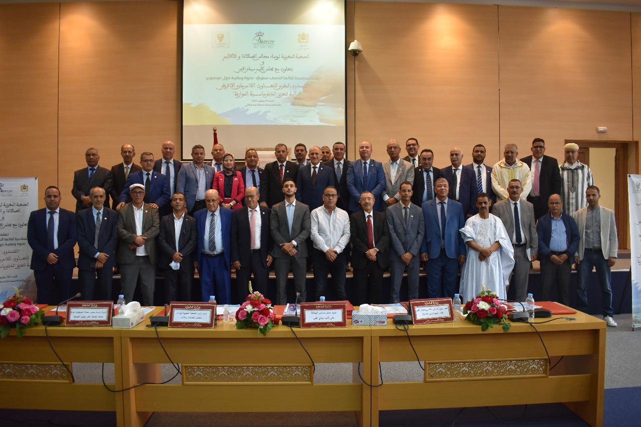 عقدت الجمعية المغربية لرؤساء مجالس العمالات والأقاليم يوم السبت 16 يوليوز 2022 بمقر عمالة سيدي افني ندوة وطنية حول ” الصندوق الافريقي لدعم التعاون اللامركزي الدولي للجماعات الترابية كالية لتعزيز الدبلوماسية الموازية” وكانت مناسبة أيضا لتقديم الحصيلة النصف سنوية لأنشطة الجمعية و المنجزات التي قامت بها خصوصا لتعزيز الدبلوماسية الموازية. ويأتي هذا اللقاء تنفيذا لاستراتيجية العمل التي وضعها مكتب الجمعية لتنزيل الأهداف المسطرة بقانونها الأساسي خاصة ما يهم خلق روابط للتضامن ما بين مجالس العمالات والأقاليم وتنسيق علاقات التعاون فيما بينها وتقاسم الخبرات و التجارب الفضلى حول القضايا المتعلقة بممارسة الاختصاصات المخولة لها.