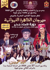 بدعم من وزارة الشباب والثقافة والتواصل – قطاع الثقافة، وبتنسيق مع مقاطعة سيدي بليوط، تنظم الجمعية الفنانين المغاربة بالمهجر الدورة الثالثة لمهرجان الظاهرة الغيوانية “دورة الأستاذ بلحاج وكيل أعمال مجموعة ناس الغيوان منذ سنة 1974″، وذلك يوميي 26 و27 شتنبر الجاري بالمركب الثقافي سيدي بليوط.