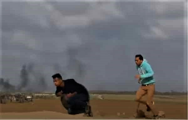 وأظهرت اللقطات المصورة، قنص الاحتلال للشاب علي عبد الفتاح عبد النبي (19 عامًا)، حينما كان يحاول إشعال إطاري مطاطي على السياج الحدودي مع قطاع غزة.