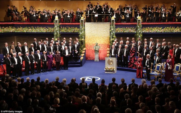 أقامت العائلة المالكة السويدية حفلة لتكريم الفائزين بجائزة نوبل حول العالم في قاعة مدينة ستوكهولم التي زينت بالشمعدانات الذهبية وصفوف الزهور واستضافت أكبر العقول في العالم وألمع المواهب بحسب صحيفة “الديلي ميل”البريطانية.