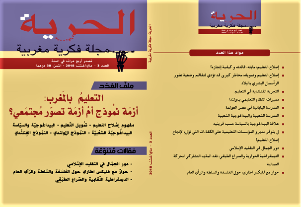 صدر العدد الثالث من مجلة الحرية (المغرب) الذي تناول موضوع: التعـليـمُ بالمَغـرب: أزمَة نمُوذج أمْ أزمَة تصوّر مُجتمَعي ؟ وذلك من خلال المواضيع التالية: