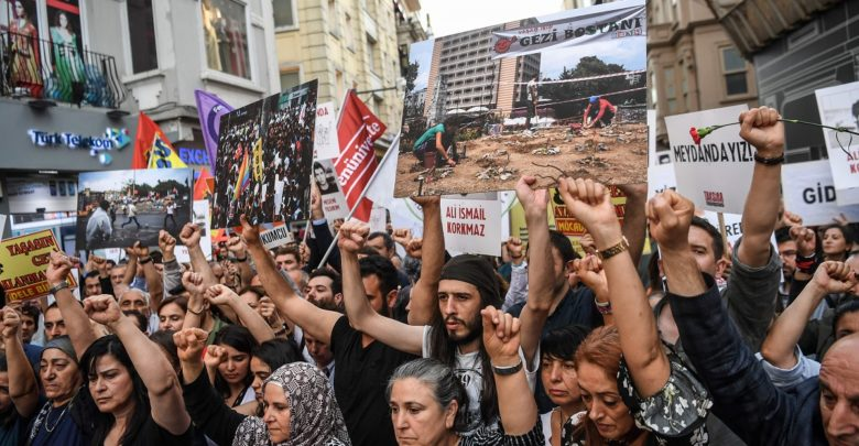 خرج مئات المعارضين للرئيس التركي رجب طيب أردوغان، في مسيرة يوم الخميس 31 ماي. في وسط إسطنبول، إحياء للذكرى السنوية الخامسة للاحتجاجات التي شكلت عام 2013 تحدياً خطيراً لسلطته.