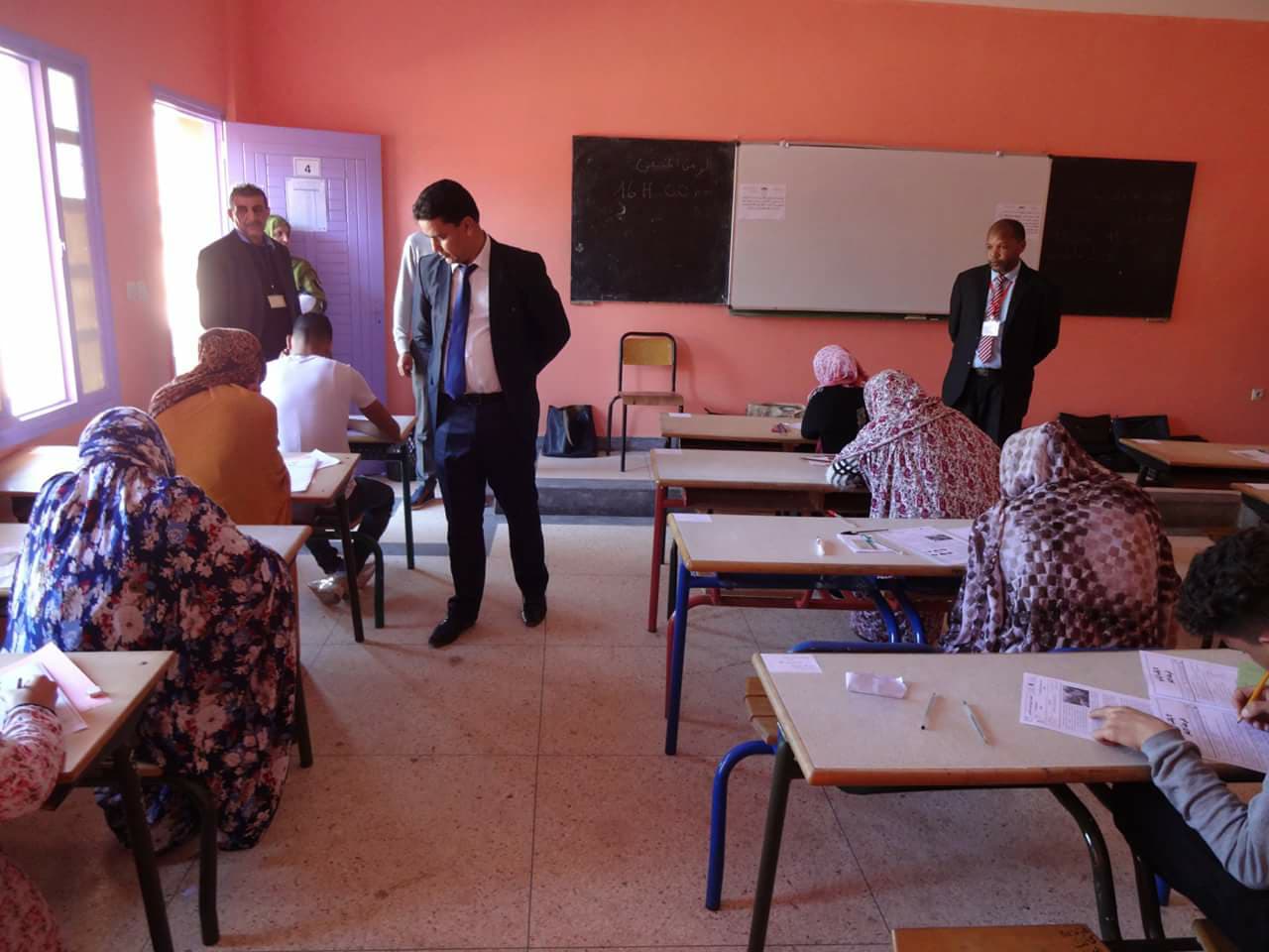 مر الامتحان الوطني للبكالوريا الدورة العادية- دورة يونيو 2018- للمترشحين الرسميين و الاحرار باقليم كلميم بوابة الصحراء،ايام 5و6 يونيو 2018 بجميع مراكز الامتحانات وبالنسبة لجميع الشعب والمسالك في ظروف جيدة تحضيرا وإعدادا وتنظيما ومراقبة ،مكنت جميع المترشحات والمترشحين من اجتياز هذا الاستحقاق التربوي الوطني في ظروف عادية مناسبة ، عكستها الاجواء الطيبة التي سادت مراكز الامتحانات اثناء عملية الاجراء والانضباط الكبيرالذي أبان عنه المترشحون والمترشحات والطاقم التربوي والاداري المشرف على هذه المراكز طيلة ايام الامتحان، مما ساعد على ضمان مبدأ تكافؤ الفرص بين جميع المترشحين ، وفتح المجال امامهم للاستحقاق والتميز وسط اجواء تنظيمية محكمة،وفق الاجراءات التنظيمية الواردة في دفتر المساطر المحين سعيا الى ضمان النزاهة والمصداقية،وذلك بفضل يقظة وتظافر جهود جميع المتدخلين(رؤساء المراكز،مراقبي الاجراء،اعضاء الكتابة،الفريق المحلي والاقليمي والجهوي لزجر الغش،الملاحظين،اعوان المؤسسات،فرق الحراسة الامنية من درك ملكي وقوات مساعدة واعوان سلطة ). حيث تم تشكيل لجن اقليمية وجهوية في إطار تتبع ومراقبة جودة الامتحان تحت اشراف السيد المدير الاقليمي السيد الحافظ حواز و مدير الاكاديمية السيد عبد الله بوعرفة ، تقوم بزيارات ميدانية لكل المراكز الاقليمية بالوسطين الحضري والقروي للاطلاع على سير مختلف العمليات المرتبطة بالاختبارات الكتابية للامتحان الوطني وفق مقتضيات دفتر المساطر ، من فتح الاظرفة وتوزيع المواضيع وتكثيف الحراسة من طرف الاساتذة المكلفين بالمراقبة والملاحظين، كما كان المدير الاقليمي يقوم شخصيا بين الفينة والاخرى بزيارات تفقدية مفاجئة للعديد من مراكز الامتحانات للاطمئنان على سيرعملية الاجراء وظروف التنظيم والحراسة، وكذا الوقوف عن مدى تنفيذ دليل المساطر والمذكرات والمراسلات الخاصة بهذا الحدث الوطني وكذا الوقوف ميدانيا عن قرب على جميع التدابير المتخذة لتعزيز المراقبة وضبط عمليات الغش المحتملة