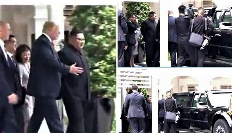 استغل الرئيس الأميركي دونالد ترامب قمته التاريخية مع الزعيم الكوري الشمالي كيم جونغ أون، التي انعقدت صباح الثلاثاء في سنغافورة، ليستعرض سيارته الليموزين الرئاسية. فبعدما أنهى ترامب وكيم غداء عمل، بدا أن الرئيس الأميركي قام بوقفة غير مقررة في جدول أعمال القمة، من أجل إظهار سيارته المدرعة الضخمة، المعروفة باسم “الوحش“.