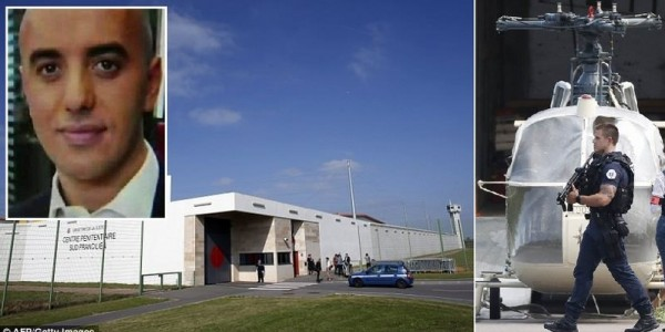 وقالت وزيرة العدل الفرنسية نيكول بيلوبيه الأحد إن طائرة هليكوبتر حطت في فناء بالسجن لم يكن مغطى بشبكة واقية.