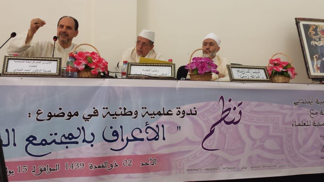 احتضن مقر المدرسة العلمية إكضي بمدينة تزنيت، أشغال الندوة العلمية الثالثة، ضمن سلسلة الندوات المندرجة في إطار البرنامج العلمي الذي بلورته معها الرابطة المحمدية للعلماء، وذلك يوم الأحد 15 يوليوز 2018م، في موضوع “الأعراف بالمجتمع السوسي: قضايا وأحكام”، حضرها أعضاء من المجلس الأكاديمي للرابطة، ورؤساء وأعضاء المجالس العلمية المحلية بالمنطقة، والمندوب الإقليمي لوزارة الأوقاف والشؤون الإسلامية، وعلماء وطلبة المدرسة العلمية إكضي، وأساتذة جامعيون من جامعة ابن زهر، وباقي الجامعات المغربية، بالإضافة إلى طلبة المدارس العتيقة بسوس.