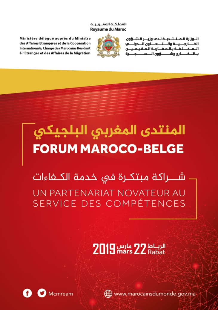 تنظم الوزارة المنتدبة المكلفة بالمغاربة المقيمين بالخارج وشؤون الهجرة يوم 22 مارس 2019 بالرباط، المنتدى المغربي البلجيكي تحت شعار: “شراكة متجددة في خدمة الكفاءات”.